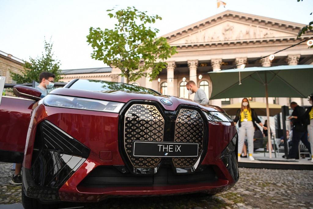 這是2021年9月8日在德國慕尼黑國際車展寶馬汽車戶外展區拍攝的一臺寶馬iX電動車。新華社記者逯陽攝