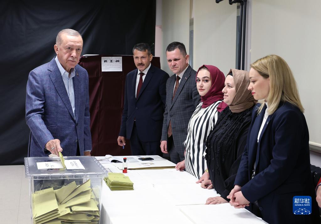 5月14日,在土耳其安卡拉,民眾在一處投票站參加投票。新華社發(fā)(穆斯塔法·卡亞攝)