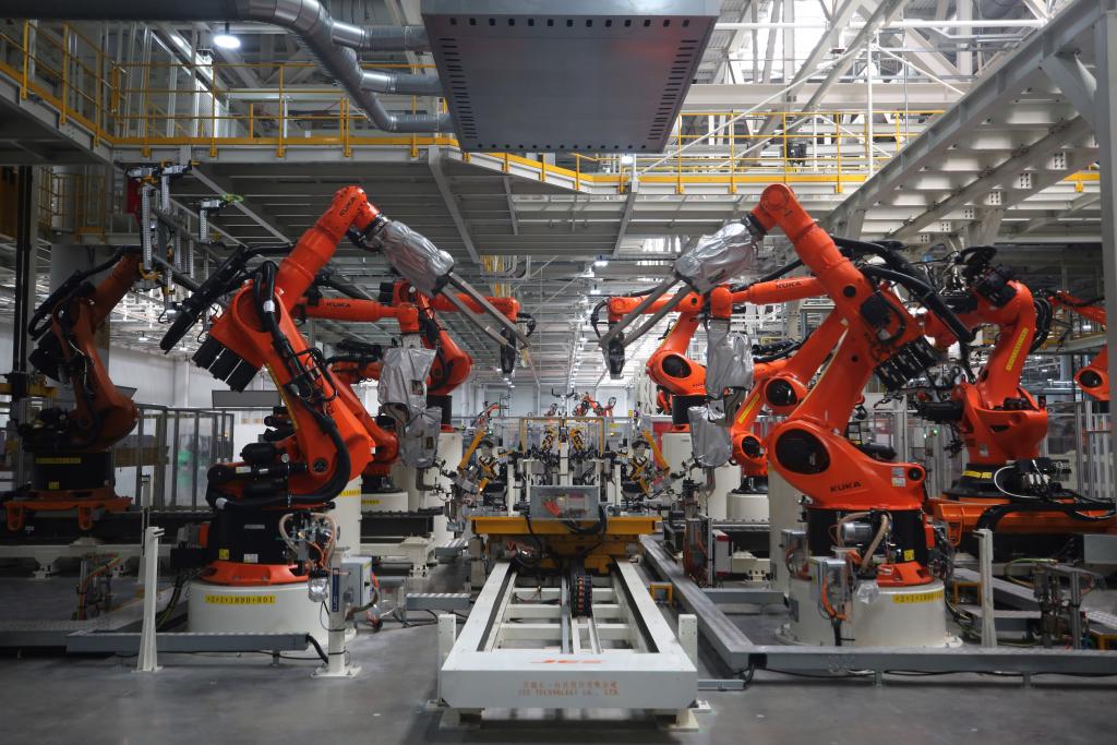 這是5月29日在安徽合肥拍攝的大眾安徽模塊化電驅動平臺工廠車身車間一角。新華社記者杜瀟逸攝