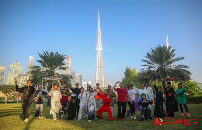 人民網迪拜12月13日電 (記者管克江)周日清晨,世界最高塔——迪拜哈利法塔下的草坪上,一群身穿中式練功服的人們排成隊列,伴著舒緩的古典民樂,起勢、野馬分鬃、白鶴亮翅……近年來,每周練習太極拳已經成為許多迪拜民眾的愛好。