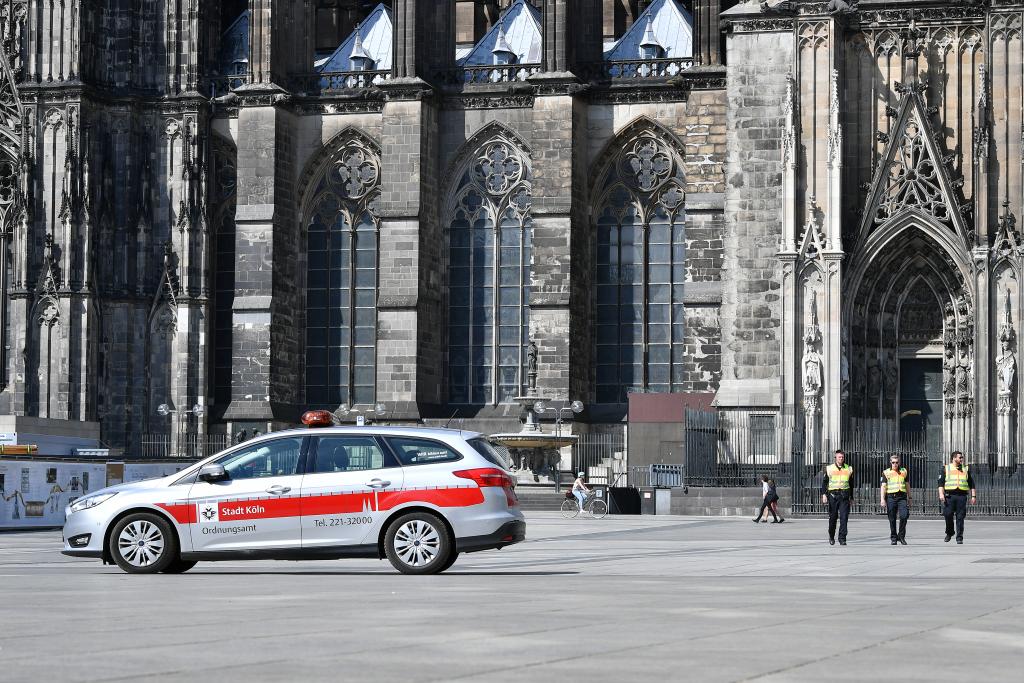 2020年4月16日,在德國科隆,安保人員在科隆大教堂前的廣場上執勤。新華社發(烏爾里希·胡夫納格爾攝)