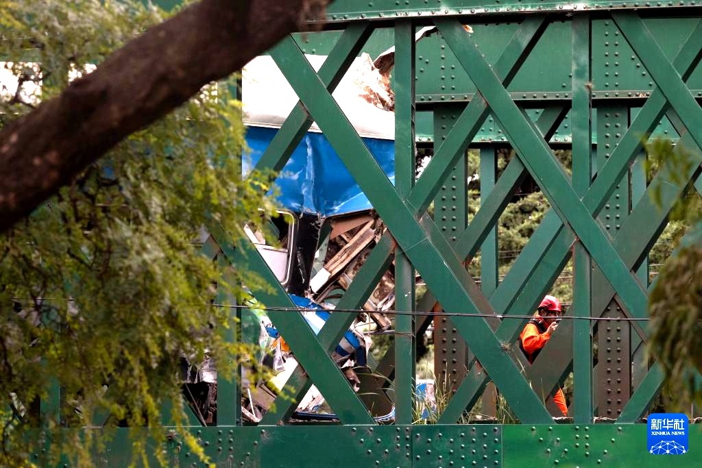 5月10日,救援人員在阿根廷首都布宜諾斯艾利斯火車相撞事故現場工作。新華社發(馬丁·薩巴拉攝)
