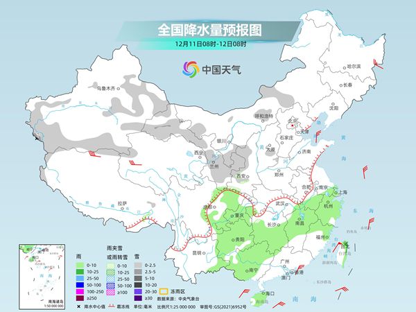 今明兩天(12月11日至12日),北方降雪將持續縮減,南方繼續維持大范圍陰雨天氣。與此同時,冷空氣帶來的降溫影響仍在進行中,大部地區的氣溫將再下一個臺階,冷上加冷,多地將陸續創今年立冬以來新低。