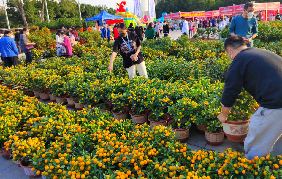 1月14日下午,天氣放晴,溫暖如春,花市熱鬧起來了:鮮花競相怒放、姹紫嫣紅,市民聞香而來,精心挑選。這是除夕前的最后一個周末,年味越來越濃,大家忙著置辦年貨,當然少不了年桔和鮮花,為新年增添一抹靚麗的“春色”。