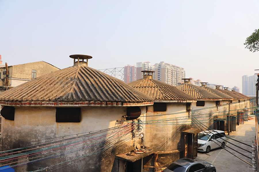 東江糧倉文化創意產業園項目位于園洲鎮下南村沿江路,這里有8座蘇聯式的圓筒糧倉、9座平方倉,還有原園洲人民公社舊址、園洲鎮第一家“三來一補”企業——紡織廠舊址等。其中,8座圓筒糧倉建于1958年,采用紅磚墻面和圓拱形灰瓦屋頂,整體呈碉樓堡壘狀。隨著時代的發展,這里的建筑老化且多處于空心化狀態。