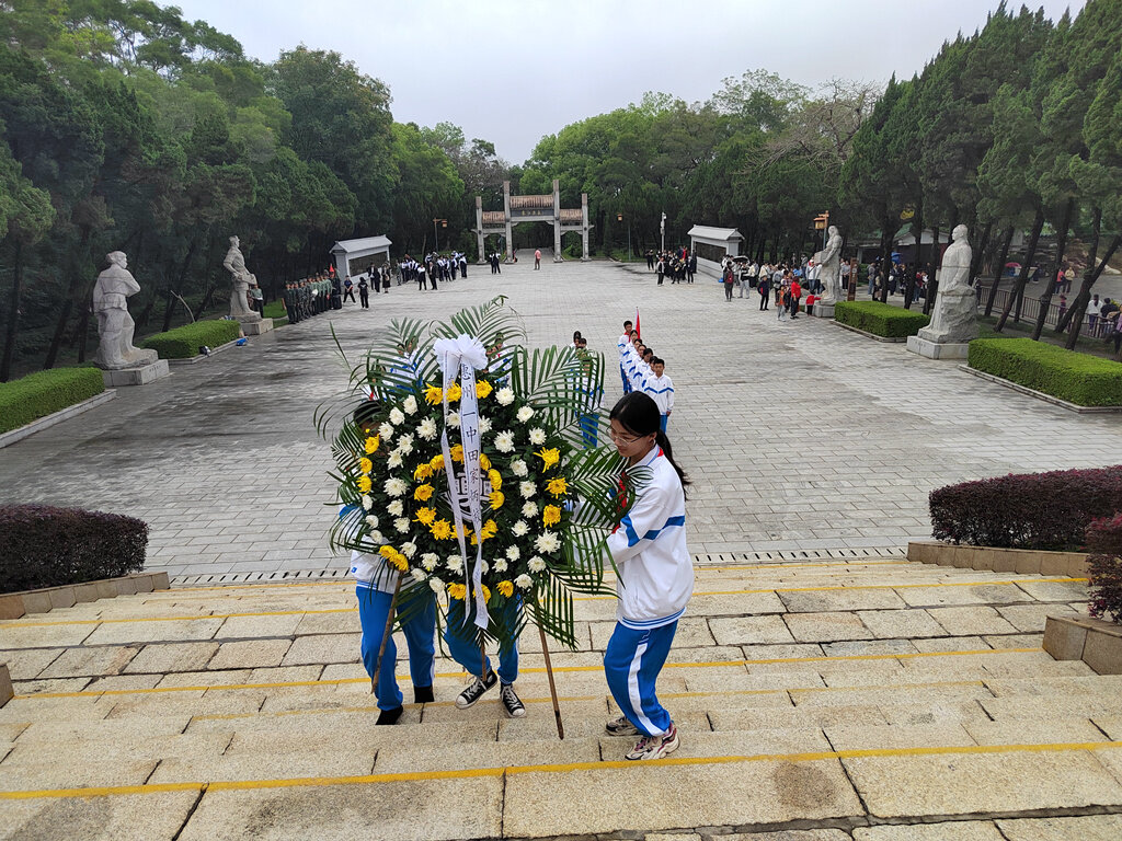 惠州市一中田家炳校區學生到東江人民革命烈士紀念碑前祭掃。