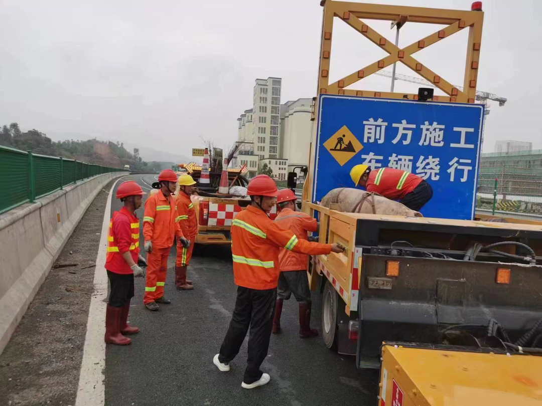 4月2日8時許,惠州市公安局交警支隊高四大隊接途經司機報警稱高速上有“二師兄”出沒,執勤民警立即趕往長深高速深圳方向K3553+500路段處,發現3頭“二師兄”。