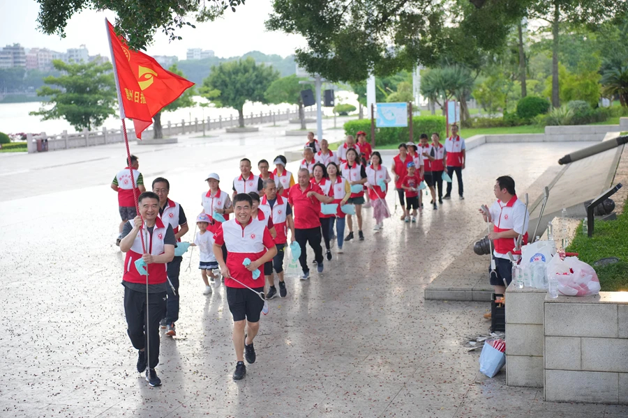 “為愛彎腰,益起撿跑!”7月15日下午,惠州日報社志愿服務隊齊聚東江公園,手持垃圾鉗和垃圾袋,用“公益”與“環保”相結合的撿跑活動,身體力行踐行環保公益理念,為美麗惠州添彩賦能。