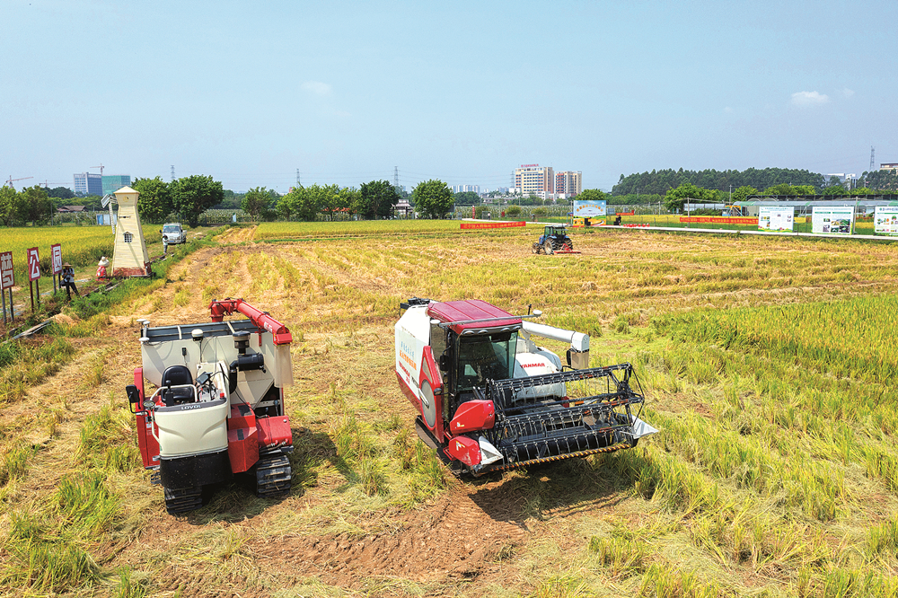 無人駕駛收割機在田間作業。惠州日報記者湯渝杭 攝
