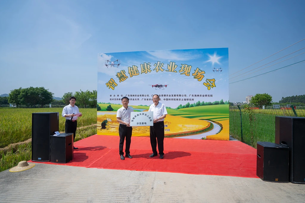 智慧農業是未來農業的方向。當天,羅錫文院士向海納農業授予了“華南農業大學無人農場示范基地”牌匾。目前,羅錫文院士團隊已經在全國范圍內建立了28處無人農場,海納是惠州地區的首個,標志著惠州向農業現代化建設邁出了重要一步。