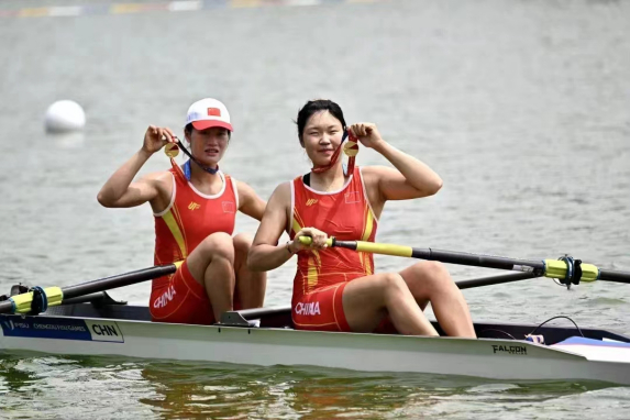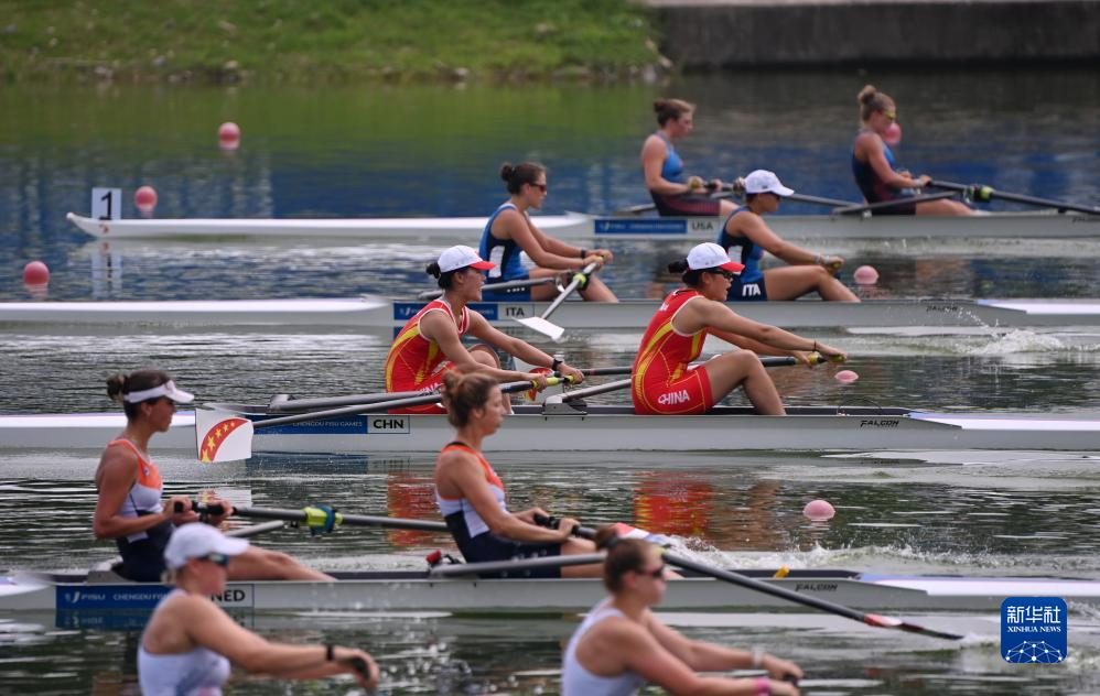 船槳齊動(dòng),劈波斬浪。8月6日,在成都舉行的第31屆世界大學(xué)生夏季運(yùn)動(dòng)會(huì)賽艇項(xiàng)目女子雙人單槳決賽中,中國(guó)組合周羽秀、張佩歆以7分31秒86的成績(jī)獲得冠軍,為中國(guó)隊(duì)拿到本次大運(yùn)會(huì)賽艇項(xiàng)目首金。