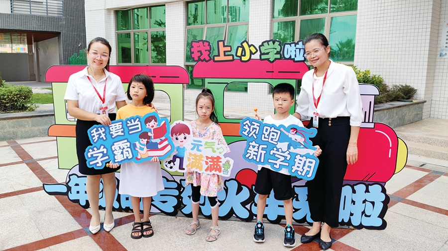 惠州市第四小學的老師們為一年級萌娃準備了豐富的入學適應性課程:認識課堂、了解學校、交新朋友。跟著老師的指引,孩子們參觀了誠信傘、孝德廳、失物招領處、孔子墻和書吧等校園文化設施,并熟悉了上學、放學接送區。