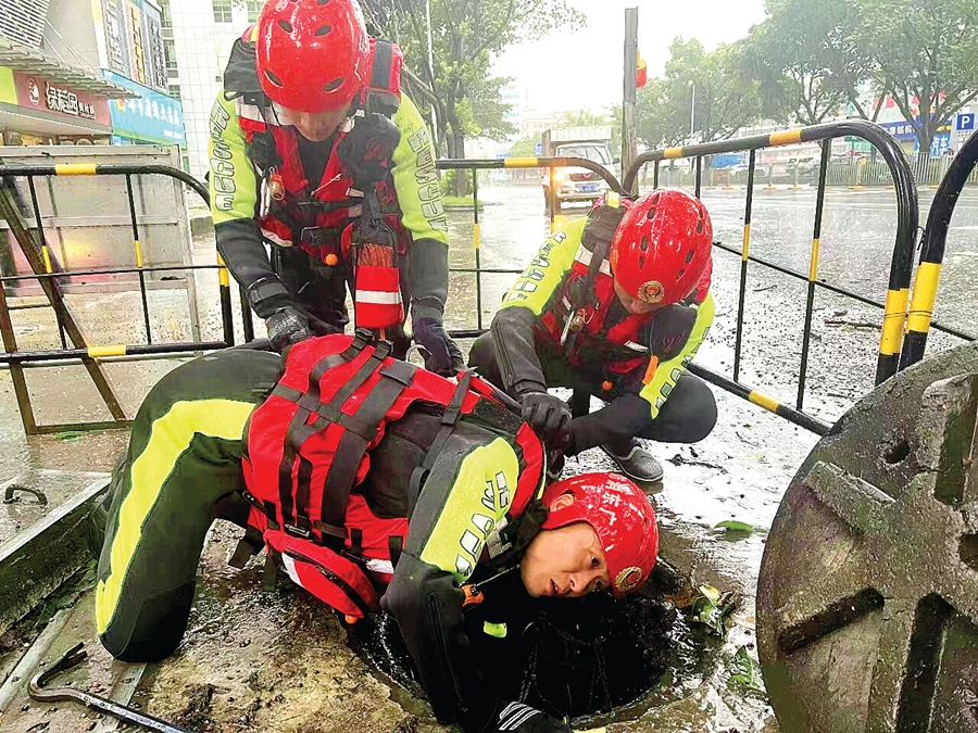 專業(yè)隊(duì)員到大亞灣澳頭街道清理排水口。 惠州日?qǐng)?bào)記者曾靜妍 通訊員唐佳楠 攝