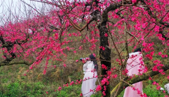 “往年我們要去河源市連平縣看桃花,沒有想到象頭山也有桃花開得這么美。”來自惠城區(qū)的邱女士特意約了4個好姐妹驅(qū)車前來賞花,邱女士滿臉喜色地說道:“來到這里,仿佛來到了世外桃源,心情十分開心!”她特意穿上了白色飄逸的古裝服,在這爭奇斗艷的桃園里記錄下美麗的瞬間。