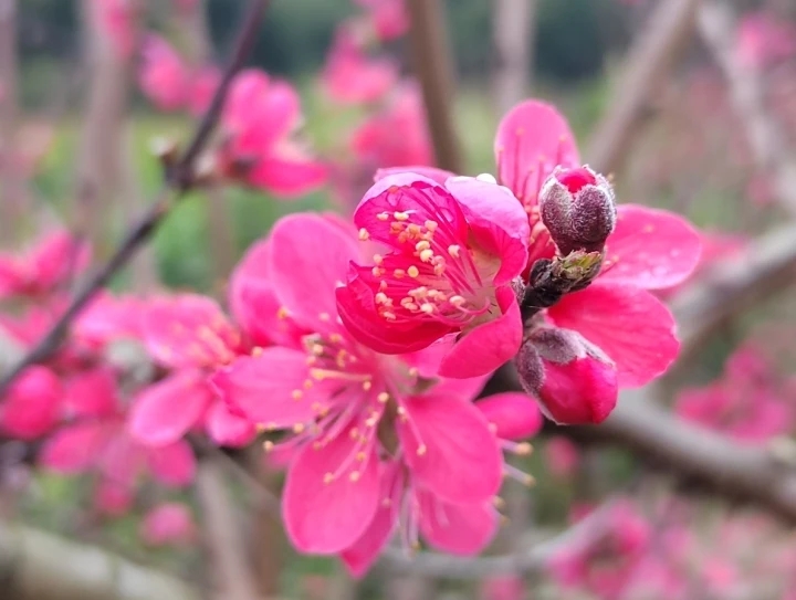 春意俏枝頭,桃花競相開。近日,在博羅縣泰美鎮(zhèn)象頭山上,120畝2000多棵桃樹的鷹嘴桃園花開正旺,漫山遍野的桃花、爭奇斗艷,游客三五成群結(jié)伴前來賞桃花。