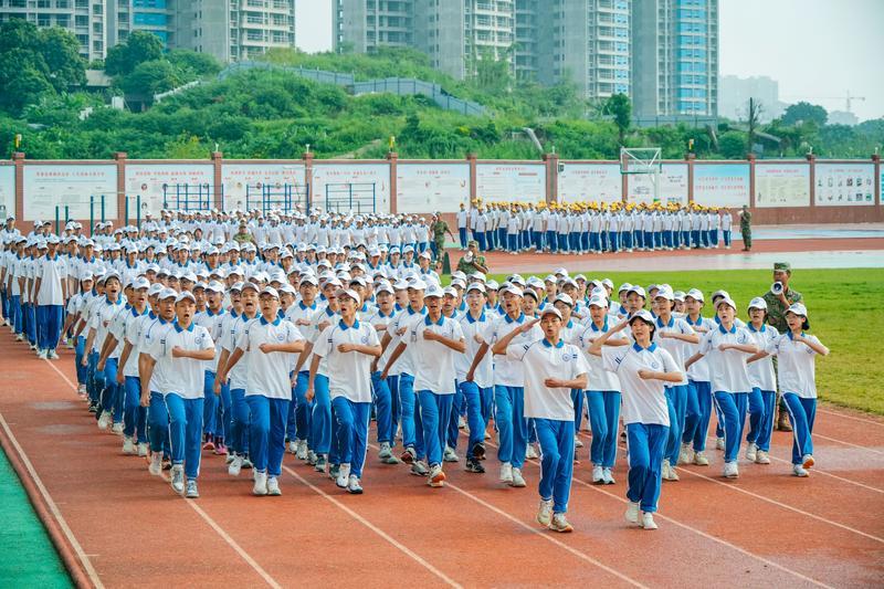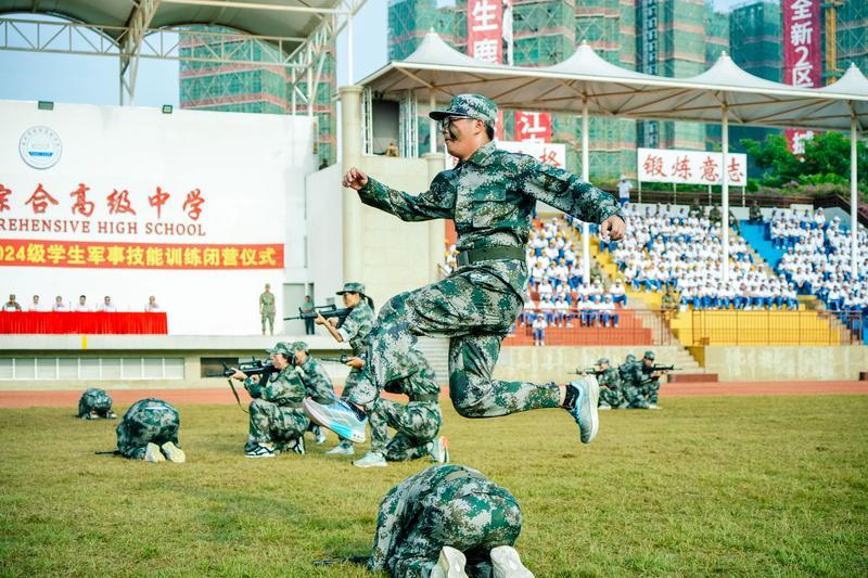 軍訓鑄鐵骨,青春耀榮光。9月14日上午,惠州綜合高中2024級高一學生軍訓閉營儀式舉行。高一學子結束為期一周的軍訓生活,以最挺拔的姿態迎接檢閱。