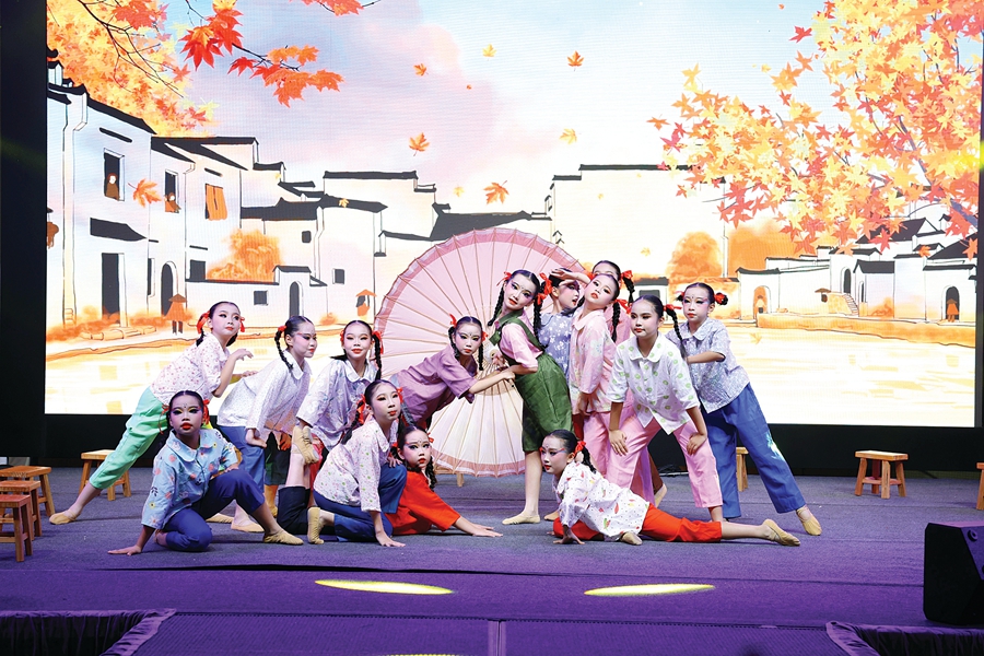 “我要上村晚,我愛魅力園洲”主題文藝晚會總決賽上,孩子們在表演節目。