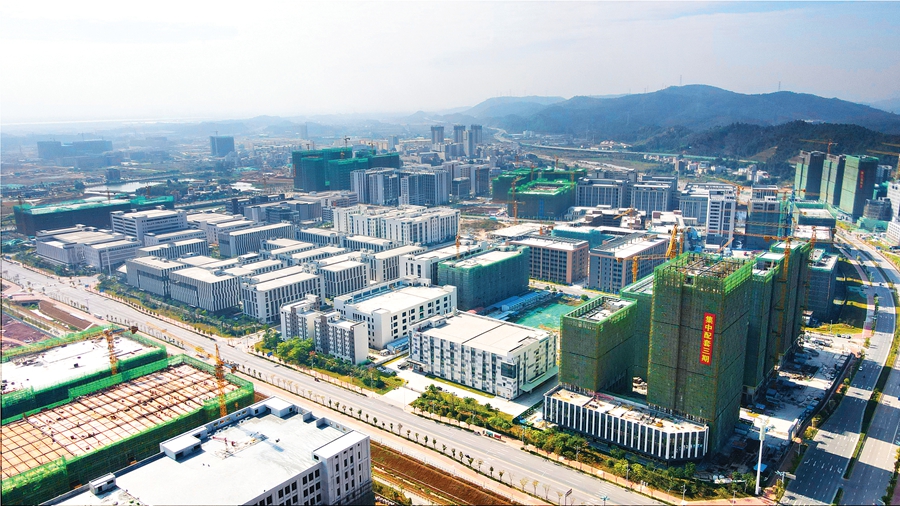 在距離廣和老街約10公里的中韓(惠州)產業園起步區內,一棟棟嶄新廠房林立,產業項目集聚,工地熱火朝天,一座現代化產業新城正冉冉升起。