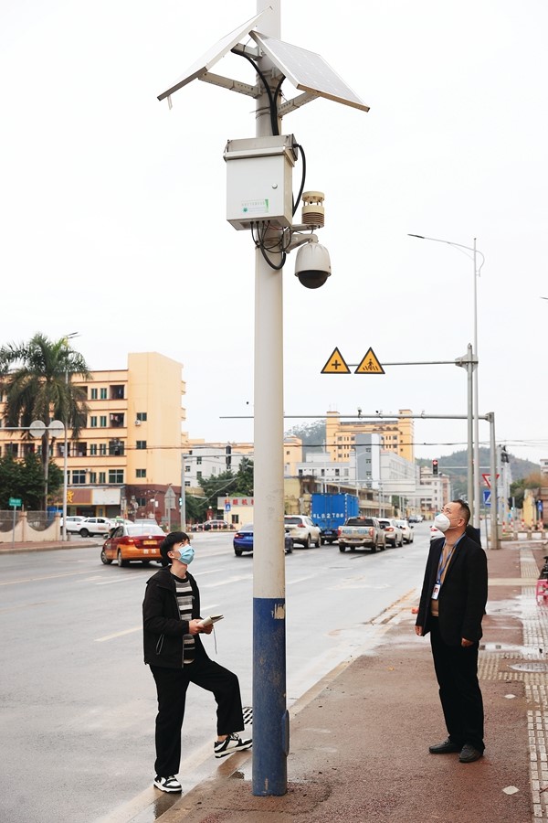 燈桿上的微觀站能24小時實時監測大氣質量。 惠州日報記者王建橋 攝