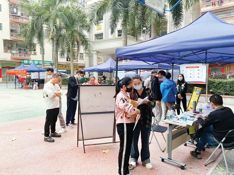 招聘會開始前,黨員房東、熱心房東積極幫忙布置會場,各出租屋黨支部積極宣傳動員。大批周邊租客聞訊而來,與各企業(yè)的招聘人員,圍繞任職條件、工資待遇、工作環(huán)境等進(jìn)行面對面交流;各企業(yè)的工作人員通過設(shè)立展板、發(fā)放宣傳單等形式,向求職者詳細(xì)介紹企業(yè)的相關(guān)背景、員工福利等基本情況。招聘會現(xiàn)場還專門設(shè)置了就業(yè)創(chuàng)業(yè)政策宣傳、咨詢攤位,為廣大求職者派發(fā)政策宣傳手冊、辦事指南等資料,并提供就業(yè)、社保、勞動權(quán)益保障等相關(guān)政策現(xiàn)場咨詢及答疑服務(wù)。