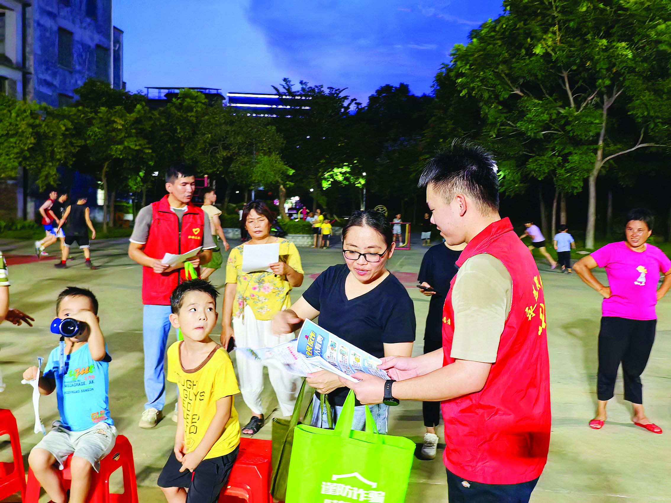 志愿者向群眾派發宣傳單宣傳反詐知識。