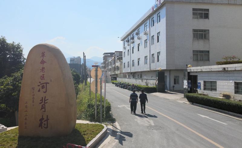 4米高的黃蠟石擺在河背村村口,上書“革命老區(qū)河背村”。