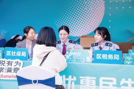稅務與社保工作人員共同解答繳費人涉費業(yè)務。 仲愷區(qū)稅務局供圖
