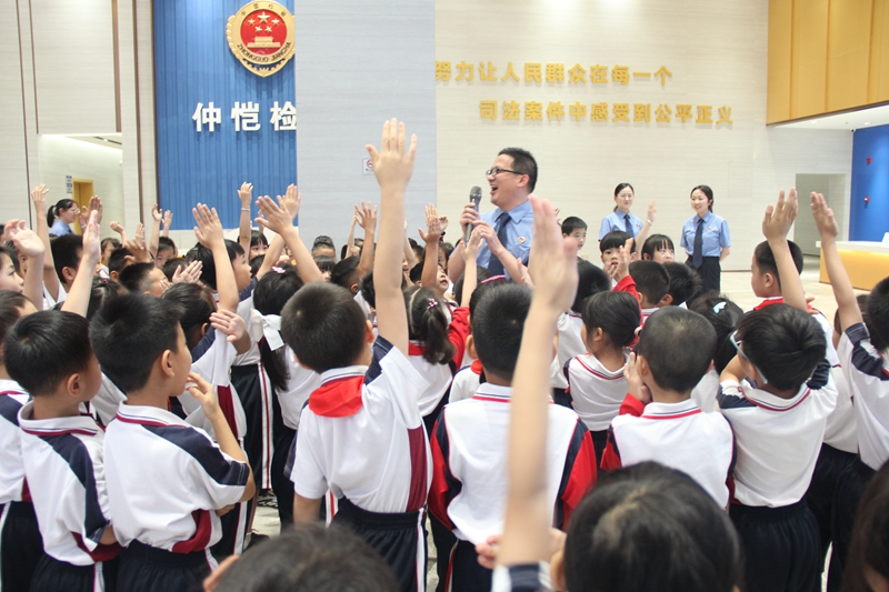 惠州日報訊 (記者劉乙端 通訊員張曼平)近日,仲愷檢察室“檢教同行,共護成長”檢察開放日活動現場迎來了一群“小客人”——仲愷中學附屬小學學生代表,在學校老師的陪同下,帶著對檢察機關工作的好奇,開啟了一場“沉浸式”法治之旅。