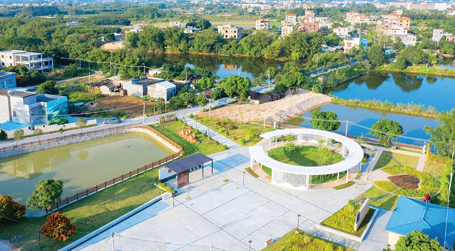 鄉村美,還在于基礎設施的完善。近年來,埔心村黨總支部以群眾的需求為出發點,完善了各類休閑基礎設施,精心打造了埔心村文化休閑廣場、清心園以及薛屋、崗下村民小組休閑廣場等,為村民茶余飯后提供了眾多休閑好去處。記者留意到,清心園不僅景色美、造型靚,還融入娛樂休閑、生態科普等功能。在造型上,以大圓扣小圓的形式,搭配愛心菜園設計、同心廊架、生態鶴擺件,多姿多彩。在為村民提供休閑場所的同時,清心園還強化了村莊的文化屬性,引入部分科普與生態研學知識。可以說,這里既是景點,也是科普娛樂的好去處。