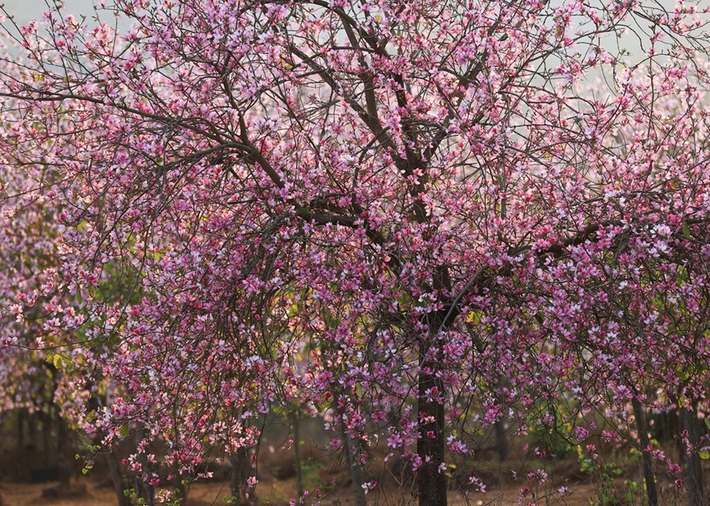 近日,博羅縣泰美鎮棕意園林第五基地的300畝宮粉紫荊進入盛花期。慕名而來的游客絡繹不絕,暢游在花海之間,陶醉在花香之中,或拍照留念,或漫步小徑、花間愜意悠閑,花香飄逸,沁人心脾。