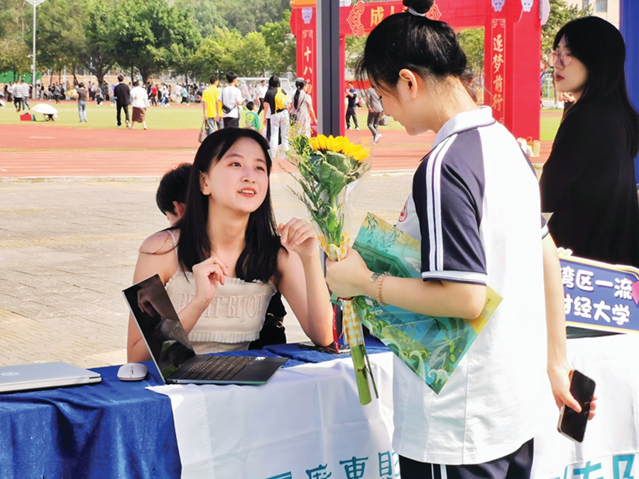 高校學(xué)長(zhǎng)學(xué)姐耐心答疑解惑。 惠州日?qǐng)?bào)記者侯婉怡 李燕文 通訊員楊舒婷 攝