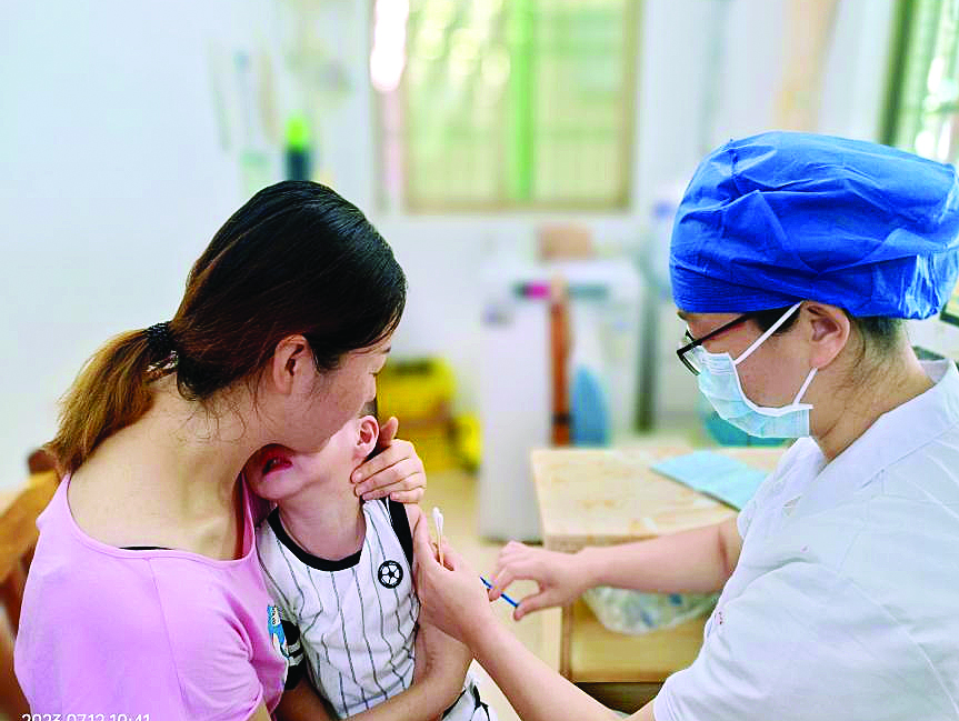 兒童接種疫苗。