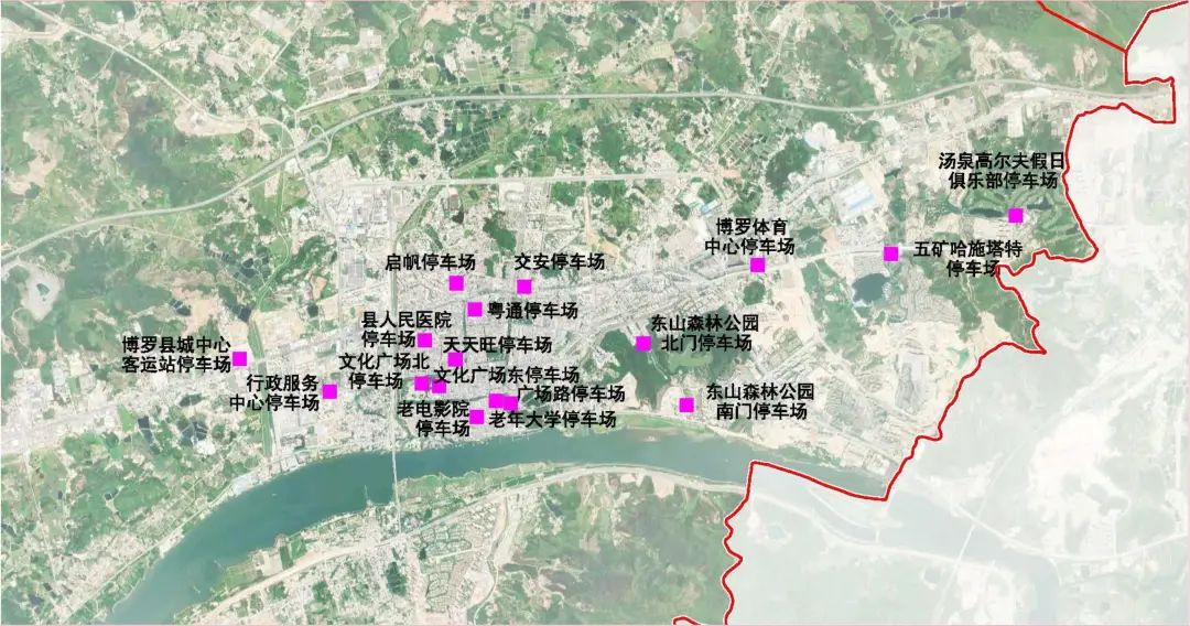 博羅縣城各片區城市公共停車場規劃情況一覽表。