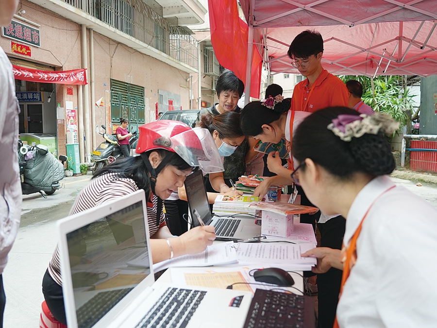 工作人員向居民宣傳老舊小區報裝的相關政策。
