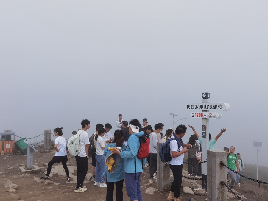 一山有四季,十里不同天。嶺南第一山——羅浮山一山多景,高低不同,各美其美。近期,氣溫適宜,天氣晴朗,不少廣州、深圳、東莞及博羅周邊的驢友和登山愛好者趁著周末登上飛云頂,感受大自然的美好,羅浮山迎來了一撥登山熱。山下陽光明媚,山上則是另一番景象。快到好漢坡時,風夾著絲絲寒意撲面而來,還飄著白白的霧氣,再往上則是云霧繚繞,恍若仙境。到了飛云頂,霧氣籠罩,意境十足。