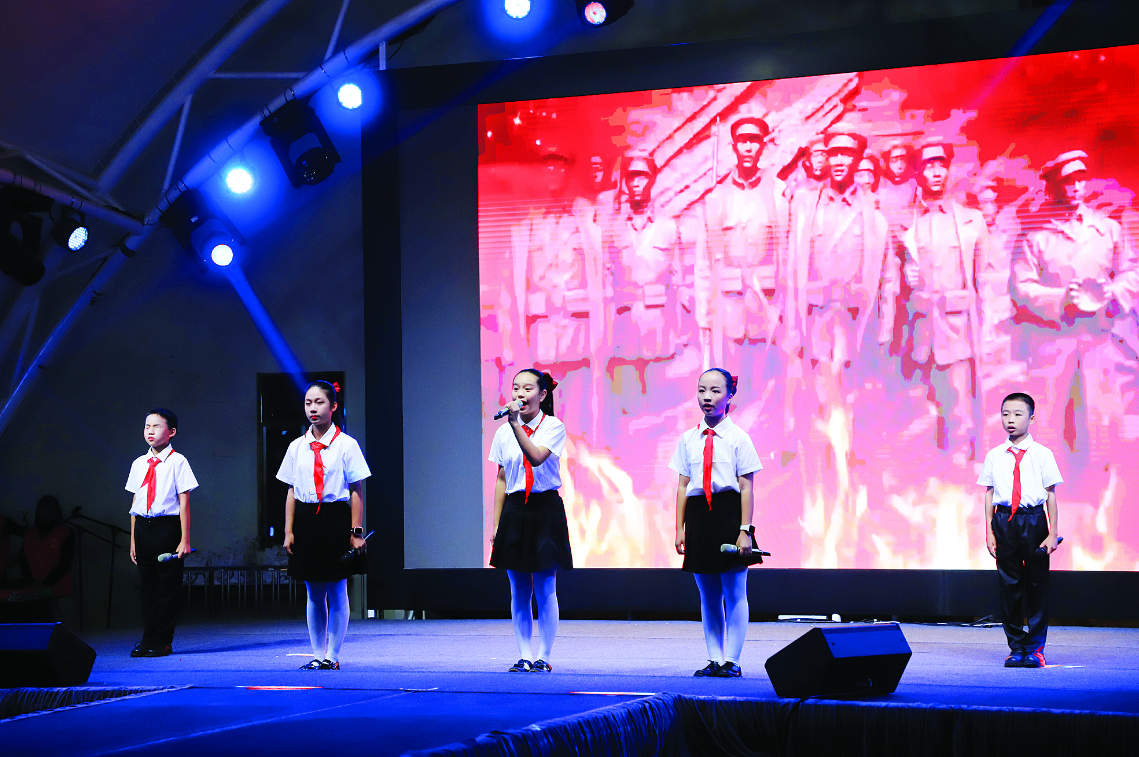 悠揚(yáng)的曲調(diào),優(yōu)美的舞姿,營造了一種相對放松的氛圍,自然而然地將大家?guī)氲叫v者的情景設(shè)計中。開場的宣講節(jié)目舞蹈《我心中的河》令人眼前一亮。這個宣講節(jié)目由小朋友擔(dān)綱,他們用自己的理解把對革命前輩的敬意融入舞蹈中。他們將革命精神記心中,把“少年智則國智,少年強(qiáng)則國強(qiáng)”和“強(qiáng)國有我”傳遞給現(xiàn)場觀眾,帶給大家滿滿的感動。