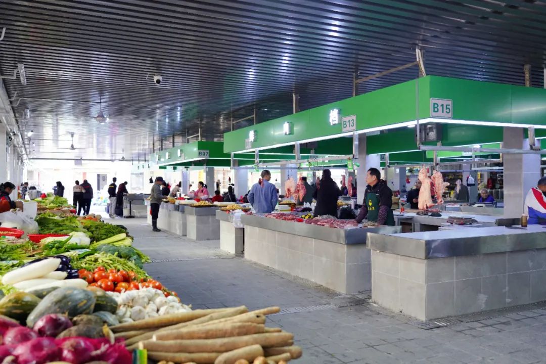 為了方便廣大群眾采購,農(nóng)貿(mào)市場在功能區(qū)域方面也進行了優(yōu)化改造,新的布局更加便于消費者一站式購物,原有通道進一步加寬,方便手推車、冰箱等載貨工具的使用,方便商家、居民進出,市場整體流通效率有效提高。