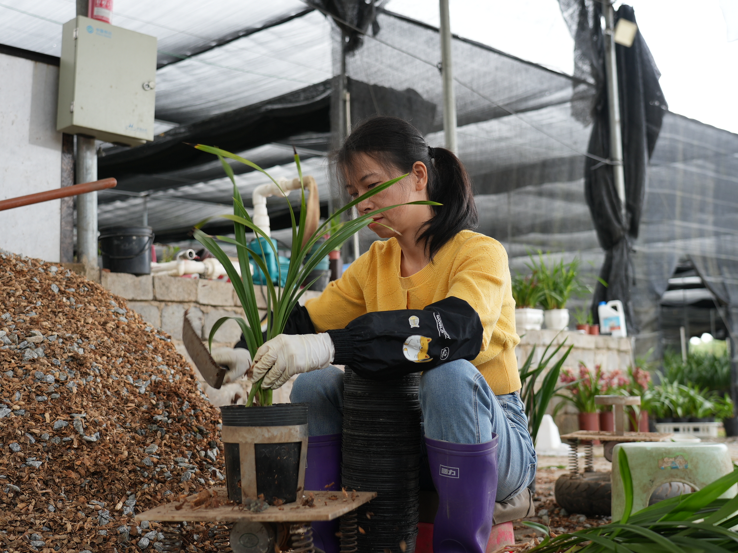 花農在打理蘭花。