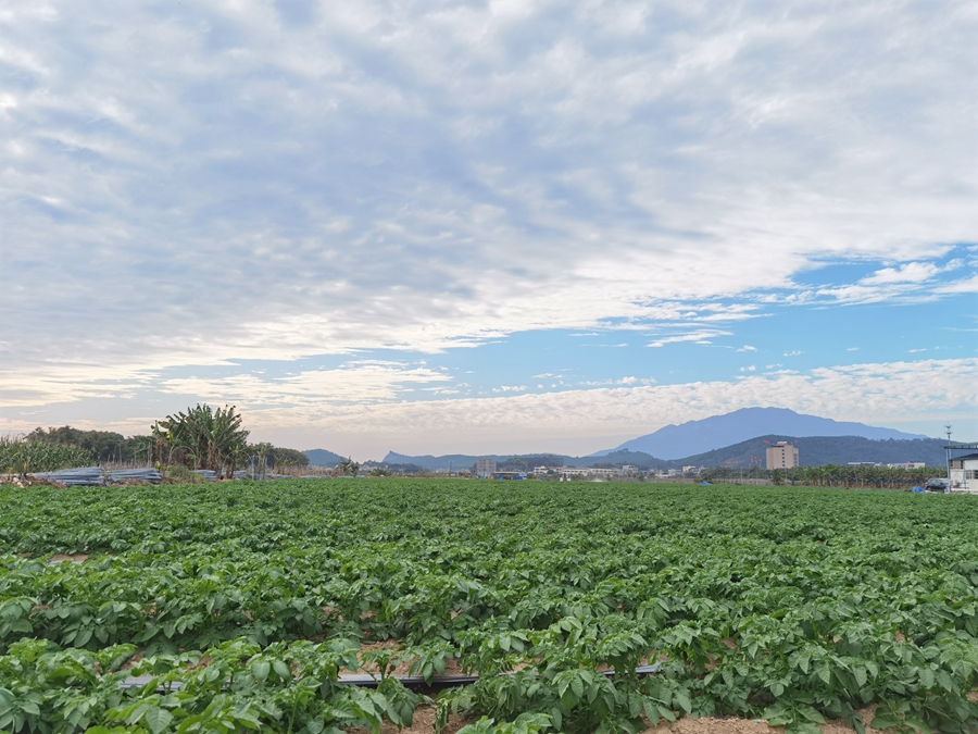 在湖鎮鎮顯崗村,沿著機耕小路來到田頭,包菜、馬鈴薯、豌豆等農作物長勢良好。