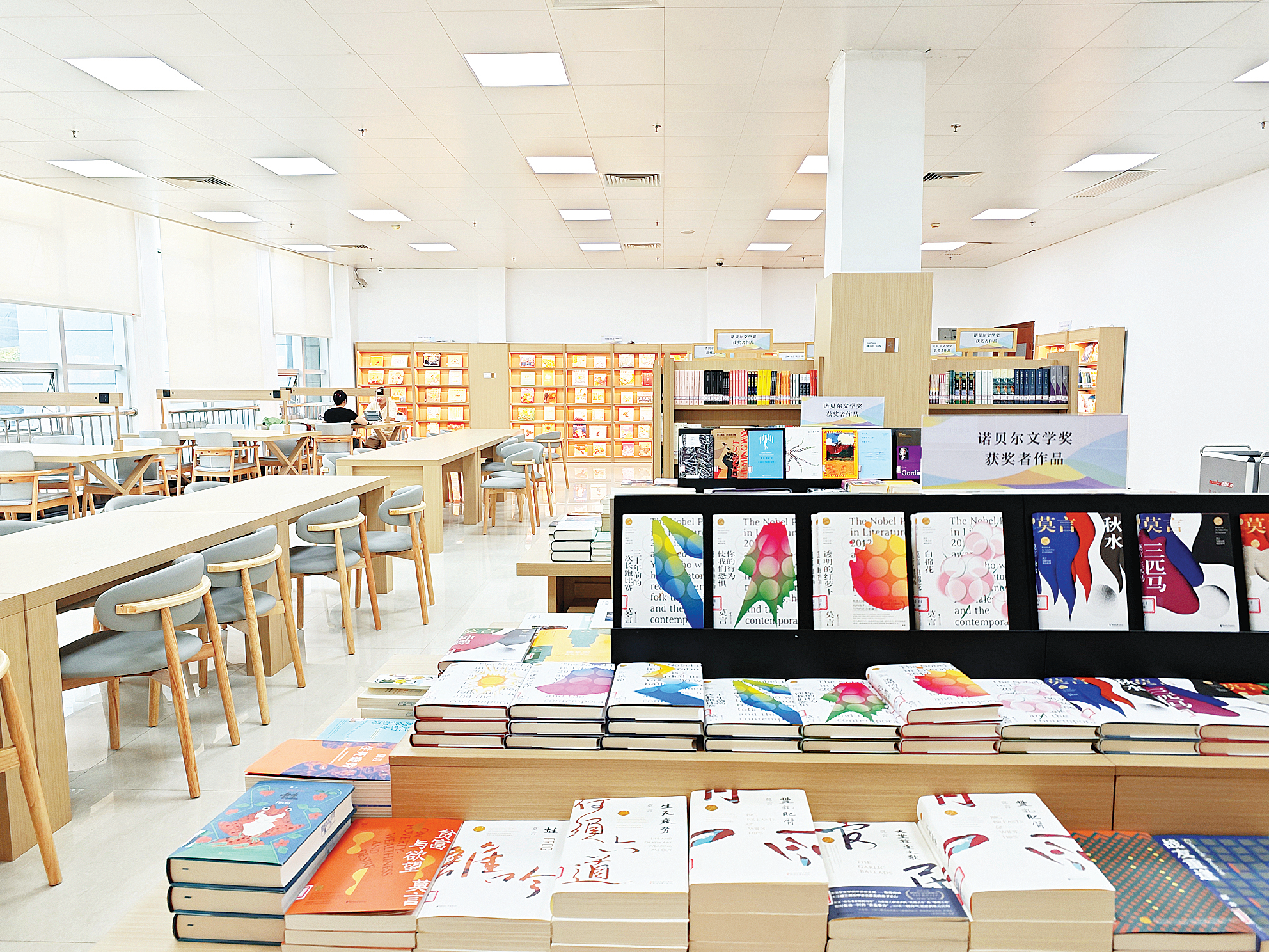 近日,博羅縣圖書館國內外獲獎作品主題自助借閱室正式投用。諾貝爾文學獎、老舍文學獎、魯迅文學獎、茅盾文學獎……走進國內外獲獎作品主題自助借閱室,只見環境寬敞明亮,氛圍舒適幽雅,一本本封面精美的書籍整齊碼放在桌子上,數張原木書桌擺放在窗邊,臺燈、插座等便民設備一應俱全。入座其中,一排排整齊的書架和一陣陣淡淡的書香味,讓人身心舒暢,自由地暢游在知識的海洋中。