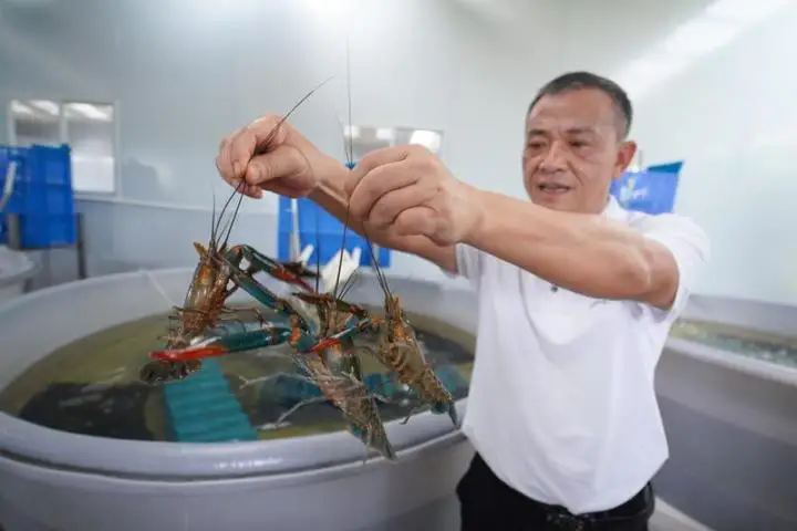 在博羅縣龍溪街道夏寮村,當地盤活閑置魚塘資源,引進了惠州市新藍龍生態農業科技有限公司項目,利用自動化廠房養殖、標準化池塘養殖,向農業新質生產力借力,發展淡水藍龍蝦特種水產養殖產業集群,助推鄉村的產業振興。目前,項目首期已基本完成,淡水藍龍蝦養殖面積超過200畝,成品蝦陸續產出,聯農帶農的效益初顯。