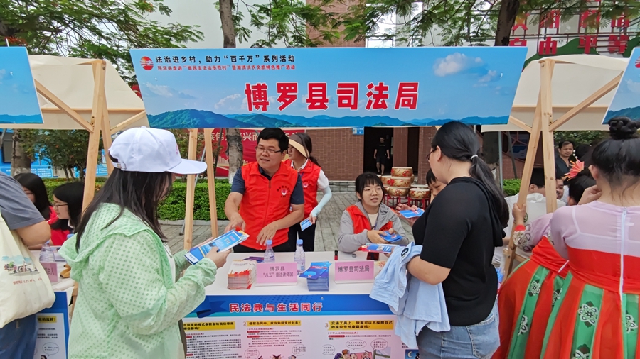 惠州日報訊 (記者盧泓宇 特約通訊員楊小青 通訊員聶小賢)日前,博羅縣《民法典》走進“省民主法治示范村”暨湖鎮鎮農文旅特色推廣活動在該鎮新作塘村舉行。活動通過展示濃厚的法治元素、優質的農產品、悠久的非遺項目、特色的文旅路線,向來自廣深等地的游客生動詮釋了當地濃厚的法治文化與別具特色的農文旅文化。