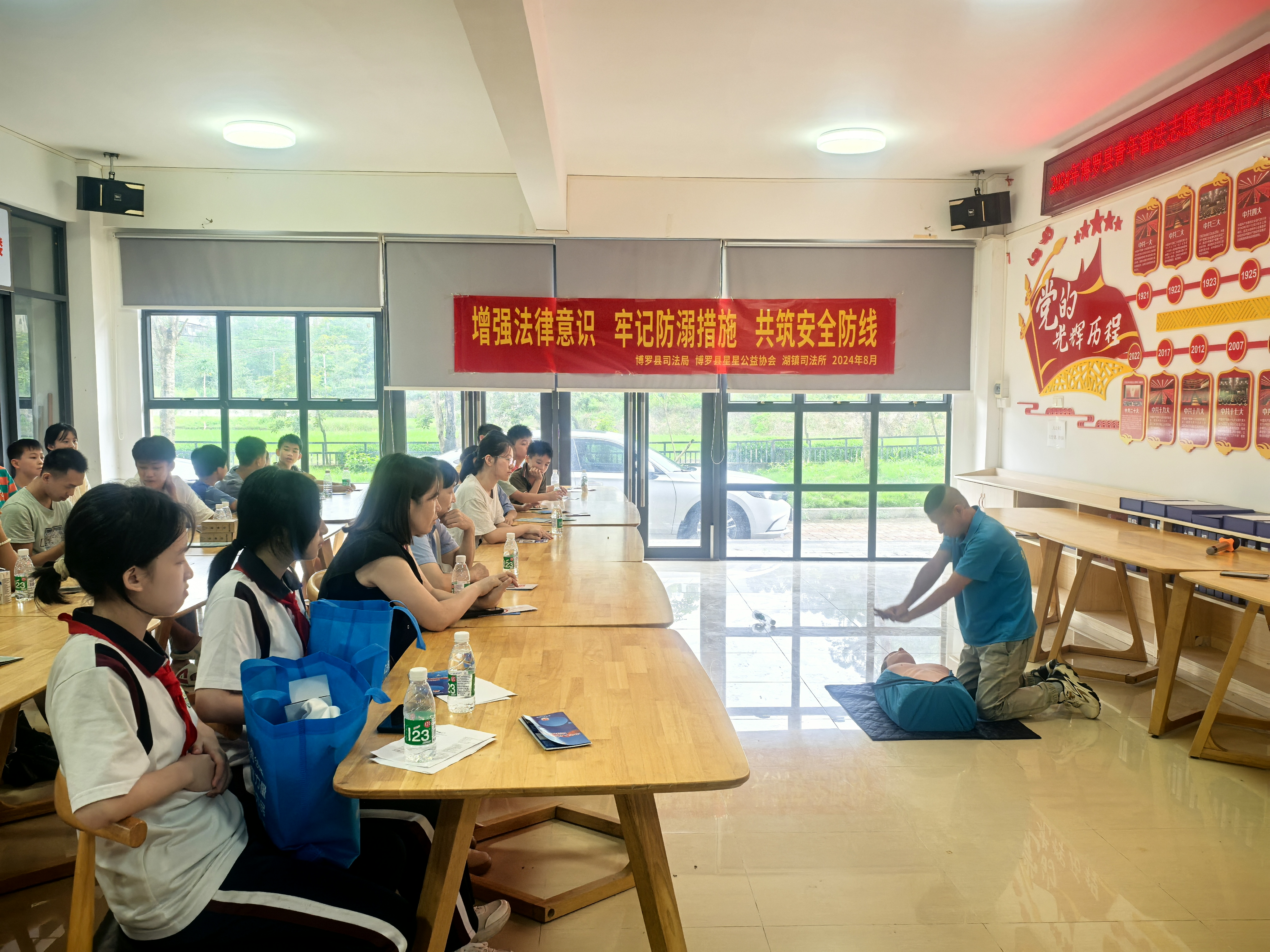 博羅縣星星公益協會的宣講團隊為在場人員開展應急管理教學,以溺水的癥狀為切入口,詳細生動地演示溺水、抽搐的救援方法,生動細致地教學海姆立克急救法和心肺復蘇的步驟、動作等事項,叮囑大家要遠離池塘、小河、沙灘、草叢蓋住的深水坑等危險地帶,時刻牢記“六不準”、掌握“兩會”,共同筑牢生命安全防線。