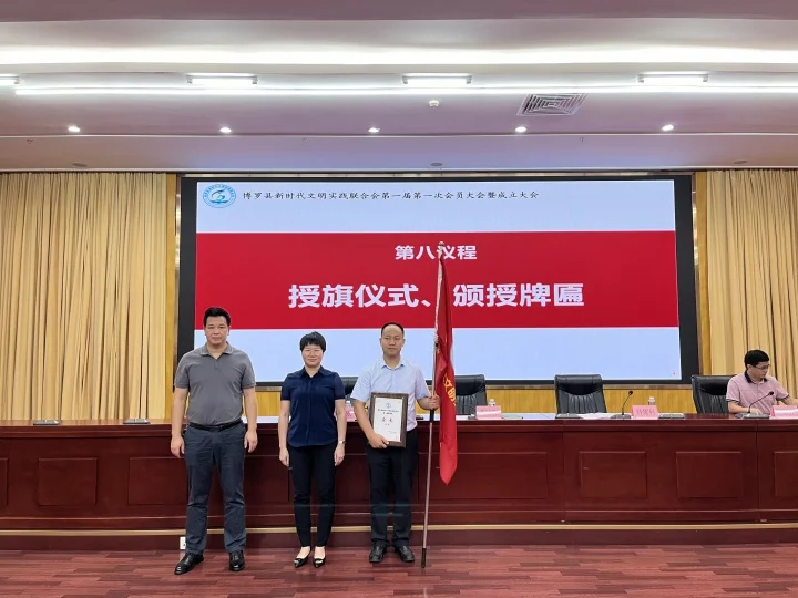 現(xiàn)場為博羅縣文明實踐聯(lián)合會會長授旗。
