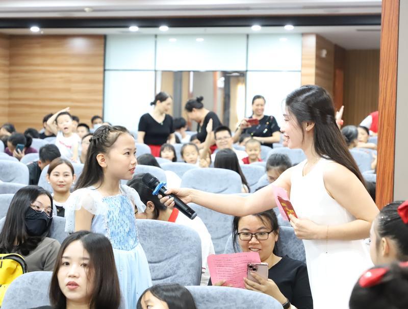 主持人和孩子互動;葜萑請笥浾弑R泓宇 通訊員龍溪宣 攝