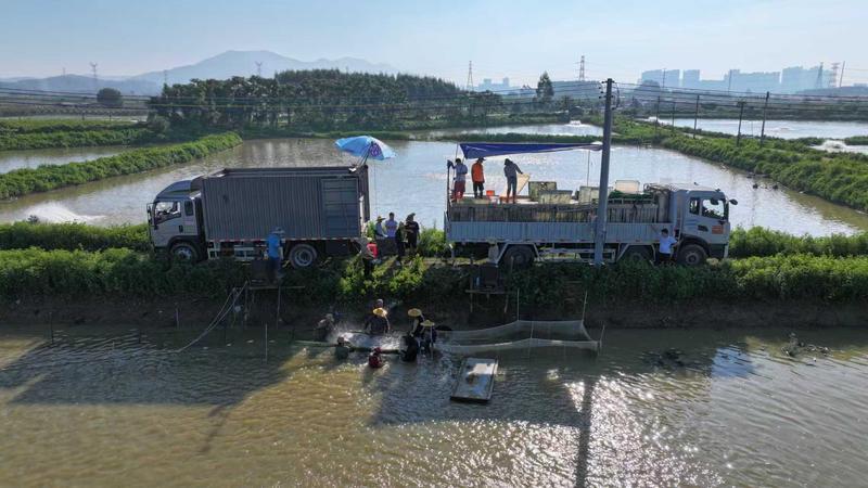 拉起網后,工人迅速將捕獲的魚兒進行分揀充氧、裝車……每個環節緊密銜接,井然有序。而后,直接發車運往粵港澳大灣區(廣東·惠州)綠色農產品生產供應基地。