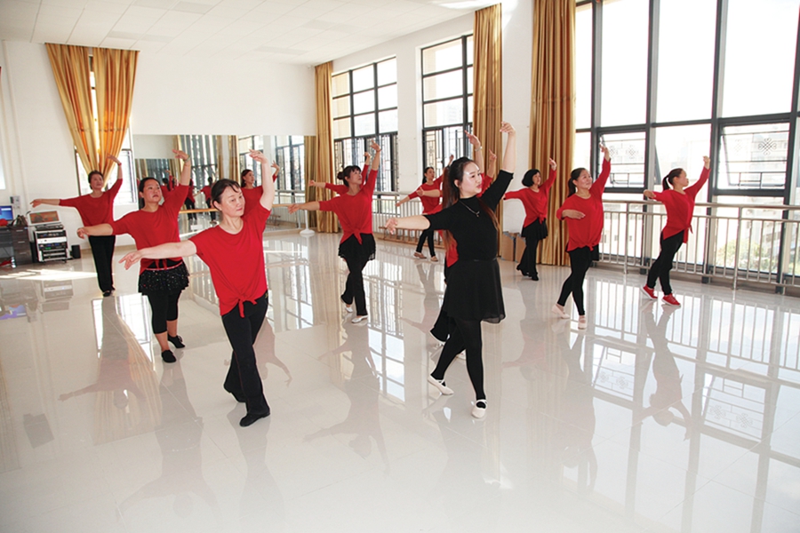 在西區街道新時代文明實踐所,文化藝術志愿者進行舞蹈培訓。