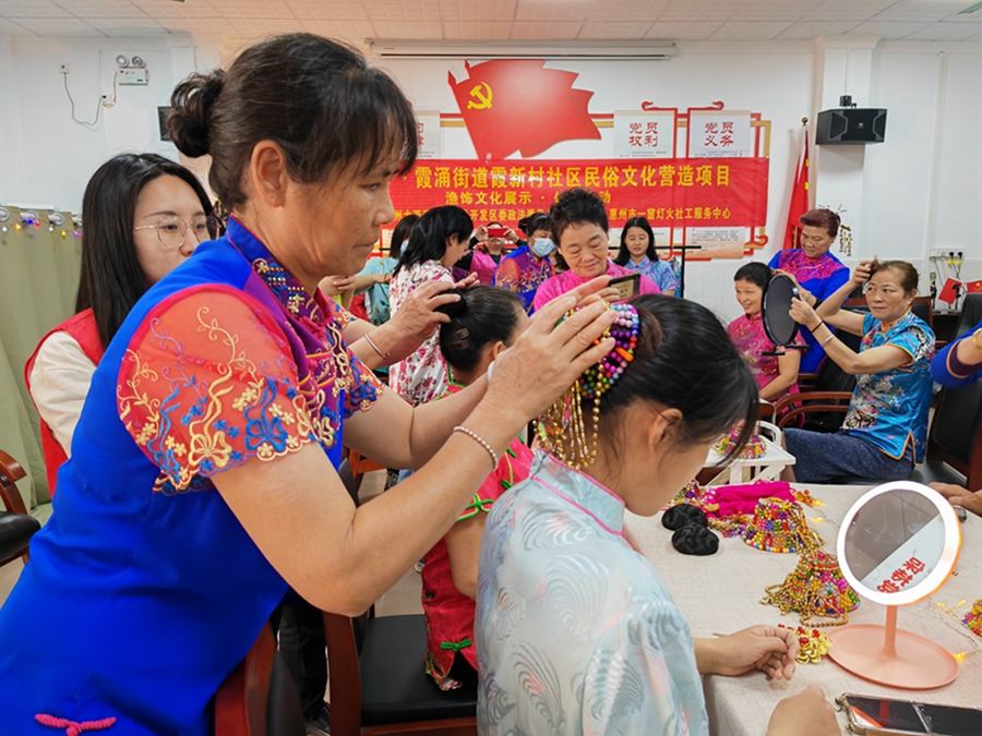 惠州日報訊 (記者匡湘鄂)在美麗的大亞灣區霞涌街道霞新村,每逢婚嫁、祝壽等喜事或每年的楊包廟會等傳統節日,村里的婦女們都會盛裝出席,穿上新制的傳統漁家衣服,梳上韻味十足的“仙姑頭”,戴上金燦燦的頭飾,隆重、熱鬧,風情無限。日前,霞新村開展了“漁你相約”社區漁飾文化體驗活動,吸引了眾多市民、游客前來體驗。