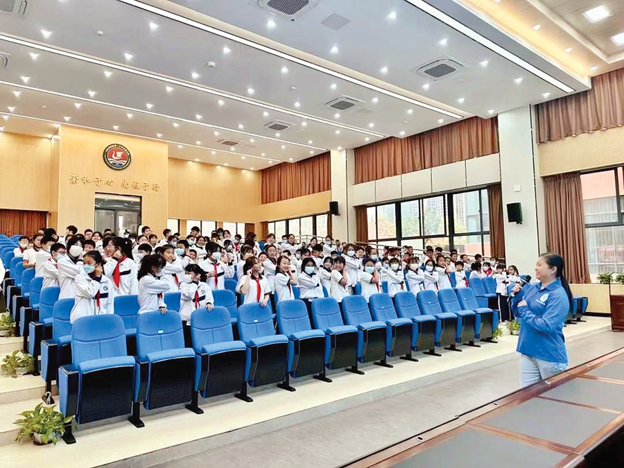 活動現(xiàn)場,宣講老師林琳通過播放節(jié)約用水主題宣傳片,講解水資源的現(xiàn)狀及各種水資源浪費(fèi)行為可能帶來的嚴(yán)重后果,呼吁同學(xué)們從點(diǎn)滴做起,節(jié)約用水。“你知道我們身邊有水嗎?”“我們的生活中缺水嗎?”“為保護(hù)水資源,我們都做了什么?”在互動環(huán)節(jié),同學(xué)們頻頻舉手踴躍回答節(jié)水、環(huán)保小知識,爭做“環(huán)保小衛(wèi)士”。