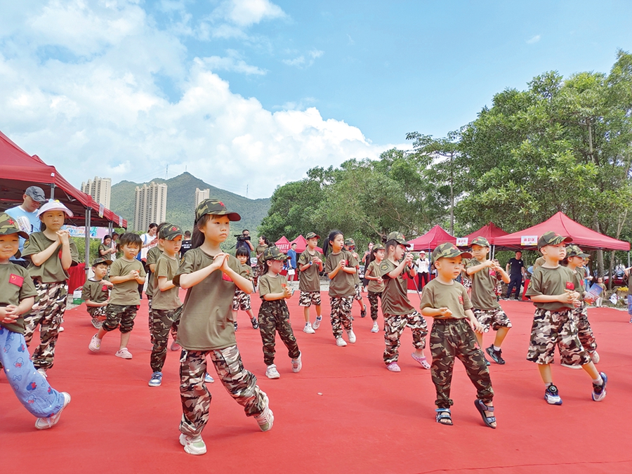 5月27日上午,陽光明媚,正是戶外活動的好時候,大亞灣開發區澳頭街道大沖休閑農莊格外熱鬧。孩子們穿著小小迷彩服在廣場上跟著工作人員活動手腳,認真地做熱身運動,準備投入到親子運動會中。當天,為迎接第73個“六一”國際兒童節,由澳頭街道主辦,以“在黨的陽光下快樂奔跑”為主題的兒童節親子歡樂會在此舉行。